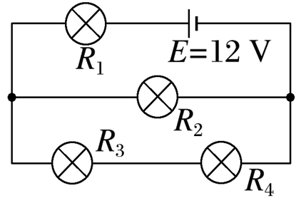 )如图所示,电路中灯泡均正常发光,阻值分别为R1=2 Ω,R2=3 Ω,R3=2 Ω,R4=4 Ω,电源电动势E=12 V,内阻不计,四个灯泡中消耗功率最大的是