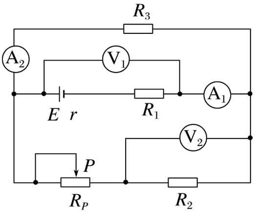 $\text{D.}$ 电压表V2的读数变小,电流表A2的读数变小