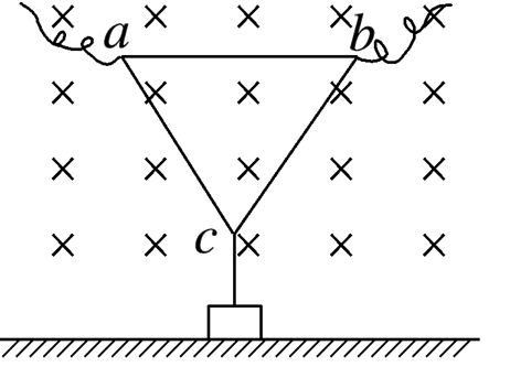 边长为L的硬轻质正三角形导线框abc置于竖直平面内,ab边水平,绝缘细线下端c点悬挂重物,匀强磁场磁感应强度大小为B,方向垂直纸面向里.现将a、b接在恒定电流的正负极上,当ab边通入的电流为I时,重物恰好对地无压力,则重物重力的大小为