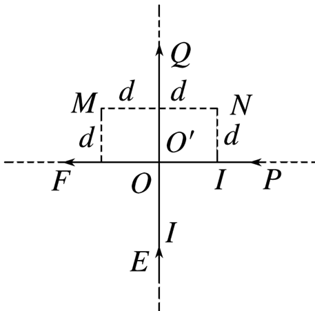 两足够长直导线均折成直角,按图示方式放置在同一平面内,EO与O′Q在一条直线上,PO′与OF在一条直线上,两导线相互绝缘,通有相等的电流I,电流方向如图所示.若一根无限长直导线通过电流I时,所产生的磁场在距离导线d处的磁感应强度大小为B,则图中与导线距离均为d的M、N两点处的磁感应强度大小分别为