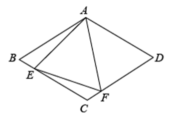 如图所示,在菱形 $A B C D$ 中,$A B=6, \angle B A D=120^{\circ}$ ,点 $E, F$ 分别在菱形的边 $B C, C D$ 上滑动,满足 $\angle E A F=60^{\circ}$ ,连接 $E F$ ,且 $E, F$ 不与 $B, C, D$ 重合.