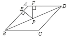 如图,菱形 $A B C D$ 的周长为 20 ,面积为 $24, P$ 是对角线 $B D$ 上一点,分别作 $P$ 点到直线 $A B 、 A D$ 的垂线段 $P E 、$ $P F$ ,则 $P E+P F$ 等于 $\qquad$