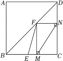 如图,在正方形 $A B C D$ 中,$A B=12, E$ 为 $B C$ 边上一点,$C E=7 . F$ 为对角线 $B D$ 上一动点(不与点 $B 、 D$ 重合),过点 $F$ 分别作 $F M \perp B C$ 于点 $M 、 F N \perp C D$ 于点 $N$ ,连接 $E F 、 M N$ ,则 $E F+M N$ 的最小值为 $\qquad$。