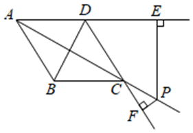 如图,已知点 $P$ 是菱形 $A B C D$ 的对角线 $A C$ 延长线上一点,过点 $P$ 分别作 $A D, D C$ 延长线的垂线,垂足分别为点 $E, F$ .若 $\angle A B C=120^{\circ}, A B=2$ ,则 $P E-P F$ 的值为 $\qquad$ .