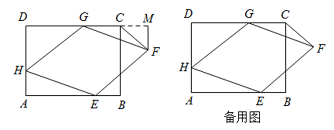 已知,如图,矩形 $A B C D$ 中,$A D=3, D C=4$ ,菱形 $E F G H$ 的三个顶点 $E, G, H$ 分别在矩形 $A B C D$ 的边 $A B$ , $C D, D A$ 上,$A H=1$ ,连接 $C F$ .