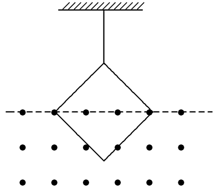 如图,一不可伸长的细绳的上端固定,下端系在边长为 $l=0.40 m$ 的正方形金属框的一个顶点上.金属框的一条对角线水平,其下方有方向垂直于金属框所在平面的匀强磁场。已知构成金属框的导线单位长度的阻值为 $\lambda=5.0 \times 10^{-3} \Omega / m$ ;在 $t=0$ 到 $t=3.0 s$ 时间内,磁感应强度大小随时间 $t$ 的变化关系为 $B(t)=0.3-0.1 t( SI )$ .求: