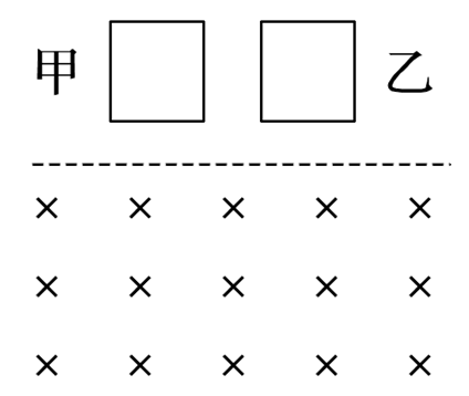由相同材料的导线绕成边长相同的甲、乙两个正方形闭合线圈,两线圈的质量相等,但所用导线的横截面积不同,甲线圈的匝数是乙的 2 倍.现两线圈在坚直平面内从同一高度同时由静止开始下落,一段时间后进入一方向垂直于纸面的匀强磁场区域,磁场的上边界水平,如图所示.不计空气阻力,已知下落过程中线圈始终平行于纸面,上、下边保持水平.在线圈下边进入磁场后且上边进入磁场前,可能出现的是