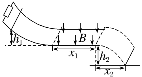 如图所示,一光滑轨道固定在架台上,轨道由倾斜和水平两段组成,倾斜段的上端连接一电阻R=0.5 Ω,两轨道间距d=1 m,水平部分两轨道间有一竖直向下,磁感应强度B=0.5 T的匀强磁场.一质量m=0.5 kg、长为l=1.1 m、电阻忽略不计的导体棒,从轨道上距水平面h1=0.8 m高处由静止释放,通过磁场区域后从水平轨道末端水平飞出,落地点与水平轨道末端的水平距离x2=0.8 m,水平轨道距水平地面的高度h2=0.8 m.通过计算可知(g取10 m/s2)
