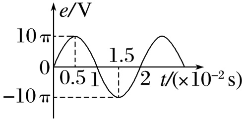 在匀强磁场中,匝数 $N=100$ 的矩形线圈绕垂直磁感线的转轴匀速转动,线圈中产生的感应电动势随时间变化规律如图所示,则下列说法正确的是