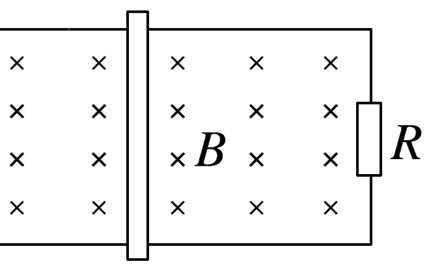 如图所示,间距为 $L$ 的光滑平行金属导轨,水平地放置在坚直向上且磁感应强度大小为 $B$ 的匀强磁场中,一端接阻值为 $R$ 的电阻。一有效电阻为 $r$ 、质量为 $m$ 的导体棒放置在导轨上,在外力 $F$ 作用下从 $t=0$ 时刻开始运动,其速度随时间的变化规律为 $v=v_{ m } \sin \omega t$ ,不计导轨电阻。求: