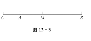 如图 12-3 所示,线段 $A B=12.6$ 厘米,点 $C$ 在 $B A$ 的延长线上,$A C=3.6$ 厘米,点 $M$ 是 $B C$ 的中点,则 $A M$ 的长是 $\qquad$厘米.