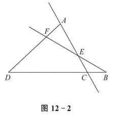 如图 12-2 所示,图中有 $\qquad$条直线,有 $\qquad$条射线,有 $\qquad$条线段,以 $E$ 为顶点的角有 $\qquad$个.