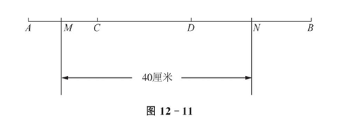 如图 12-11 所示,线段 $A B$ 被点 $C, D$ 分成了 $3: 4: 5$ 三部分,且 $A C$ 的中点 $M$ 和 $D B$ 的中点 $N$ 之间的距离是 40 厘米,求 $A B$ 的长.