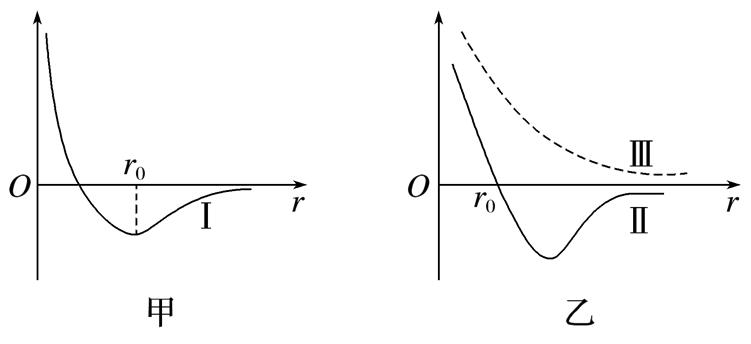 图甲和图乙中曲线Ⅰ、Ⅱ、Ⅲ分别描述了某物理量随分子之间的距离变化的规律,r0为平衡位置.现有如下物理量:①分子势能,②分子间引力,③分子间斥力,④分子间引力和斥力的合力,则曲线Ⅰ、Ⅱ、Ⅲ对应的物理量分别是