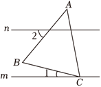 如图,$m / / n, \triangle A B C$ 的顶点 $C$ 在直线 $m$ 上,若 $A B=A C, \angle A=40^{\circ}, \angle 1=20^{\circ}$ ,则 $\angle$ 2 的度数为