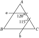 如图为两直线 $a, b$ 与 $\triangle A B C$ 相交的情形,其中 $a, b$ 分别与 $B C, A B$ 平行.根据图中标示的角度,回答下列问题.