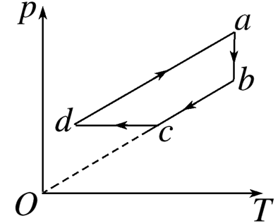 一定质量的理想气体经历了如图所示的ab、bc、cd、da四个过程,其中bc的延长线通过原点,cd垂直于ab且与水平轴平行,da与bc平行,则气体体积在