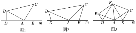 (1)如图(1),已知:在 $\triangle A B C$ 中,$\angle B A C=90^{\circ}, A B=A C$ ,直线 $m$ 经过点 $A, B D \perp$ 直线 $m, C E \perp$ 直线 $m$ ,垂足分别为点 $D 、 E$ ,则 $B D 、 D E 、 C E$ 的数量关系为 $\_\_\_\_$ .