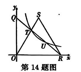如图,在平面直角坐标系中,点 $Q$ 在 $y$ 轴正半轴上,点 $R$ 在 $x$ 轴正半轴上,以 $O R$ 为边向上作等边 $\triangle O R S, O S$ 交 $R Q$ 于点 $T$ ,反比例函数 $y=\frac{k}{x}(k \neq 0)$ 的图象交 $R Q$ 于点 $T, U$ .若 $T U : R Q=1: 3, \triangle O Q T$ 的面积为 $\sqrt{3}$ .