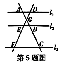 如图,直线 $l_1 / / l_2 / / l_3$ ,直线 $A C$ 分别交 $l_1, l_2, l_3$ 于点 $A, B, C$ ,直线 $D F$ 分别交 $l_1, l_2, l_3$ 于点 $D, E, F$ ,直线 $A C$ 与 $D F$ 相交于点 $G$ .若 $A G=2, B G=1, B C=5$ ,则下列结论正确的是