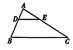 若 $\triangle A B C \backsim \triangle D E F, \triangle A B C$ 与 $\triangle D E F$ 的周长比为 $1: 4$ ,则 $A B: D E=$