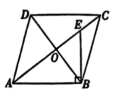 如图,在 $\square A B C D$ 中,对角线 $A C, B D$ 相交于点 $O, \angle C A B=\angle A C B$ ,过点 $B$ 作 $B E \perp A B$ 交 $A C$ 于点 $E$ .