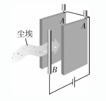如图所示,静电除尘器由板状收集器 $A$ 和线状电离器 $B$ 组成,$A 、 B$ 分别接高压电源的正、负两极,它们之间有很强的电场,空气分子被电离成正离子和电子,电子在向着正极 $A$ 运动的过程中,遇到烟气中的粉尘,使粉尘带负电,粉尘被吸附到正极 $A$ 上,以达到除尘的目的。下列说法正确的是