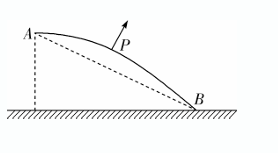 如图所示,置于坚直平面内的 $A B$ 光滑曲杆,它是按初速度为 $v_0$ 的平抛运动轨迹制成的,$A$端为抛出点,$B$ 端为落地点,且 $A 、 B$ 间的连线与水平方向成 $\alpha$ 角, $\tan \alpha=\frac{1}{2}$ 。现将一质量为 $m$ 的小圆环套于曲杆上,从 $A$ 端由静止滑下,重力加速度为 $g$ ,则