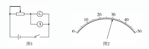 (1)用图 1 所示的电路测量表头 G 的内阻 $r_{\mathrm{g}}$ ,连接电路,闭合开关调整滑动变阻器,当电流表 $A$ 的示数为 48 mA 时,表头 $G$ 的示数如图 2 所示,该读数为 $\_\_\_\_$ $\mu$ 。