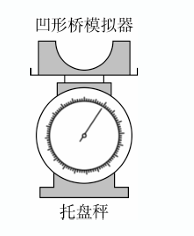 (1)将凹形桥模拟器固定在托盘秤上,如图所示,托盘秤的示数为 1.00 kg 。
