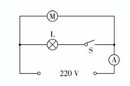 如图所示为某排气装置的电路图,它主要由规格为" 220 V 44 W "的排气扇 M 和照明灯 L构成。闭合开关 S 后,排气扇正常工作,照明灯正常发光,电流表的示数为 0.5 A 。已知排气扇线圈电阻为 $40 \Omega$ ,电流表的内阻可忽略。下列判断正确的是