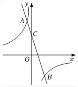如图,在平面直角坐标系中,一次函数 $y=k x+b$与反比例函数 $y=-\frac{6}{x}$ 的图象交于 $A(-1, m), B (n,-3)$ 两点,一次函数 $y =k x+b$ 的图象与 $y$ 轴交于点 $C$ .