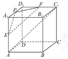 如图,在正方体 $A B C D-A_1 B_1 C_1 D_1$ 中,$E, F$ 分别是 $A A_1, C_1 D_1$ 的中点,$P$ 是线段 $A_1 D_1$ 上的动点,则直线 $A C_1$ 与平面 $P E F$ 所成角的正弦值的取值范围为