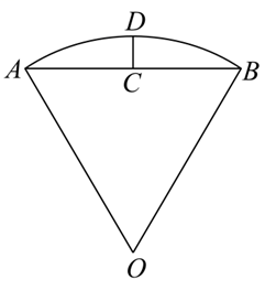 (2022-全国-统考高考真题)沈括的《梦溪笔谈》是中国古代科技史上的杰作,其中收录了计算圆弧长度的"会圆术",如图,$\overparen{A B}$ 是以 $O$ 为圆心,$O A$ 为半径的圆弧,$C$ 是 $A B$ 的中点,$D$ 在 $\overparen{A B}$ 上,$C D \perp A B$ 。"会圆术"给出 $z B$ 的弧长的近似值 $s$ 的计算公式:$s=A B+\frac{C D^2}{O A}$ .当 $O A=2, \angle A O B=60^{\circ}$ 时,$s=$