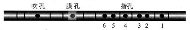 中国传统乐器竹笛的发声原理为空气柱振动,理论振动频率满足 $f=\frac{k v}{L}$(式中 $v$ 为声速, $L$ 为空气柱长度,$k$ 为常数)。如图所示为某 6 孔竹笛,孔 1 、孔 6 到吹孔的间距分别约为 $31.8 \mathrm{~cm} 、 17.2 \mathrm{~cm}$ ,贴上笛膜吹奏,仅开孔1(其余5 孔闭合)时发出的声波波长约为 $76 \mathrm{~cm}_{\circ}$ 。已知声波在空气中传播时,温度越高声速越大。下列说法正确的是