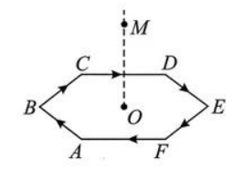 如图所示,水平面内有一边长为 $L$ 、通有恒定电流的正六边形线圈,$O$ 点为正六边形的中心,$M$ 点为中心轴线上的一点,且 $M O=1.5 L$ ,若 $A B$ 段电流在 $M$ 点产生的磁感应强度大小为 $B_0$ ,则 $M$ 点的磁感应强度大小为