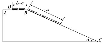 如图所示,$A B$ 为光滑的水平面,$B C$ 是倾角为 $\alpha$ 的足够长的光滑斜面,斜面体固定不动.$A B 、 B C$ 间用一小段光滑圆弧轨道相连.一条长为 $L$ 的均匀柔软链条开始时静止的放在 $A B C$ 面上,其一端 $D$ 至 $B$ 的距离为 $L-a$ .现自由释放链条,则: