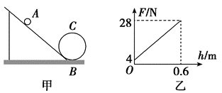 离心轨道是研究机械能守恒和向心力效果的一套较好的器材.如图甲所示,某课外研究小组将一个压力传感器安装在轨道圆周部分的最低点 $B$ 处,他们把一个钢球从轨道上的不同高处由静止释放.得到多组压力传感器示数 $F$ 和对应的释放点的高度 $h$的数据后,作出了如图乙所示的 $F-h$ 图象.不计各处摩擦,取 $g=10 \mathrm{~m} / \mathrm{s}^2$ .