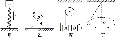 $\text{B.}$ 乙图中,物体 $A$ 固定,物体 $B$ 沿斜面匀速下滑,物体 $B$ 的机械能守恒