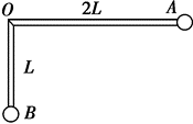 如图所示,质量分别为 $2 m 、 3 m$ 的小球 $A$ 和小球 $B$ 分别固定在由轻质杆构成的直角尺的两端,直角尺的定点 $O$ 处有光滑的固定转动轴,$A O 、 B O$ 的长分别为 $2 L$ 和 $L$ ,开始时直角尺的 $A O$ 杆部分处于水平位置而 $B$ 在 $O$ 的正下方,让该系统由静止开始自由转动,求: