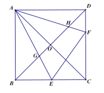 在正方形 $A B C D$ 中,对角线 $A C, B D$ 相交于点 $O$ ,点 $H, G$ 为线段 $O D$ , OB 上两动点,且保持 $\angle \mathrm{DAH}=\angle \mathrm{OAG}$ ,延长 AH 交 CD 于点 F ,延长 AG 交 BC于点 $E$ .