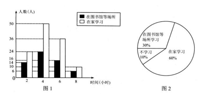 (2)调查小组将得到的数据制成频数直方图(如图 1)和扇形统计图(如图 2),可知,在这个调查中, 200 名学生双休日在家学习的有 $\_\_\_\_$人。