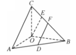 $D, F$ 分别为 $A B, B C$ 的中点, 则异面直线 $D F$ 与 $O E$ 所成角的余弦值为