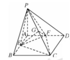 如图, 已知四棱锥 $ {P}- {ABCD}$ 的底面是正方形, $ {PA} \perp$ 平面 $ {ABCD}, {PA}= {AD}=2$, 点 $ {E}, {F}, {G}$ 分别为 $A B, A D, P C$ 的中点.