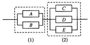 一个电路中含有(1)(2)两个零件,零件(1)含有 $A, B$ 两个元件,零件(2)含有 $C, D, E$ 三个元件,每个零件中有一个元件能正常工作则该零件就能正常工作,则该电路能正常工作的线路条数为