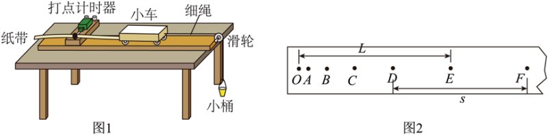 (3)纸带上 $O$ 点为小车运动起始时刻所打的点,测得 $O$ 点到 $E$ 点间的距离为 $L, D$ 点到 $F$ 点间的距离为 $s$ ,小车的质量为 $M$ ,打点计时器的打点时间间隔为 $t$ ,重力加速度为 $g$ 。