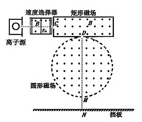 (4)若在挡板上放置一个用于接收从圆形磁场离开的粒子,求接收器的位置距 $N$ 点的距离。