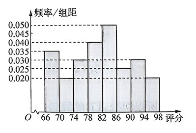 某网络平台推荐的电影作品共 1000 部,从中随机抽取 $n$ 部,统计其评分数据,将所得的评分数据分为 8 组:[66,70),[70,74),⋯,[94,98],并整理得到如图所示的频率分布直方图。已知样本中评分落在 $[70,74)$ 的电影数为 32 ,则下列说法正确的是
