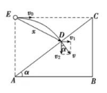 如图所示, 斜面 $A C$ 与水平方向的夹角为 $\alpha$, 在底端 $A$ 正上方与顶端等高处的 $E$ 点以速度 $v_0$ 水平抛出一小球, 小球垂直于斜面落到 $D$ 点, 重力加速度为 $g$, 则