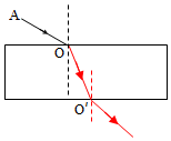 如图所示,AO表示从空气斜射向平行玻璃砖上表面的一束光。请画出这束光通过玻璃砖的光路图。